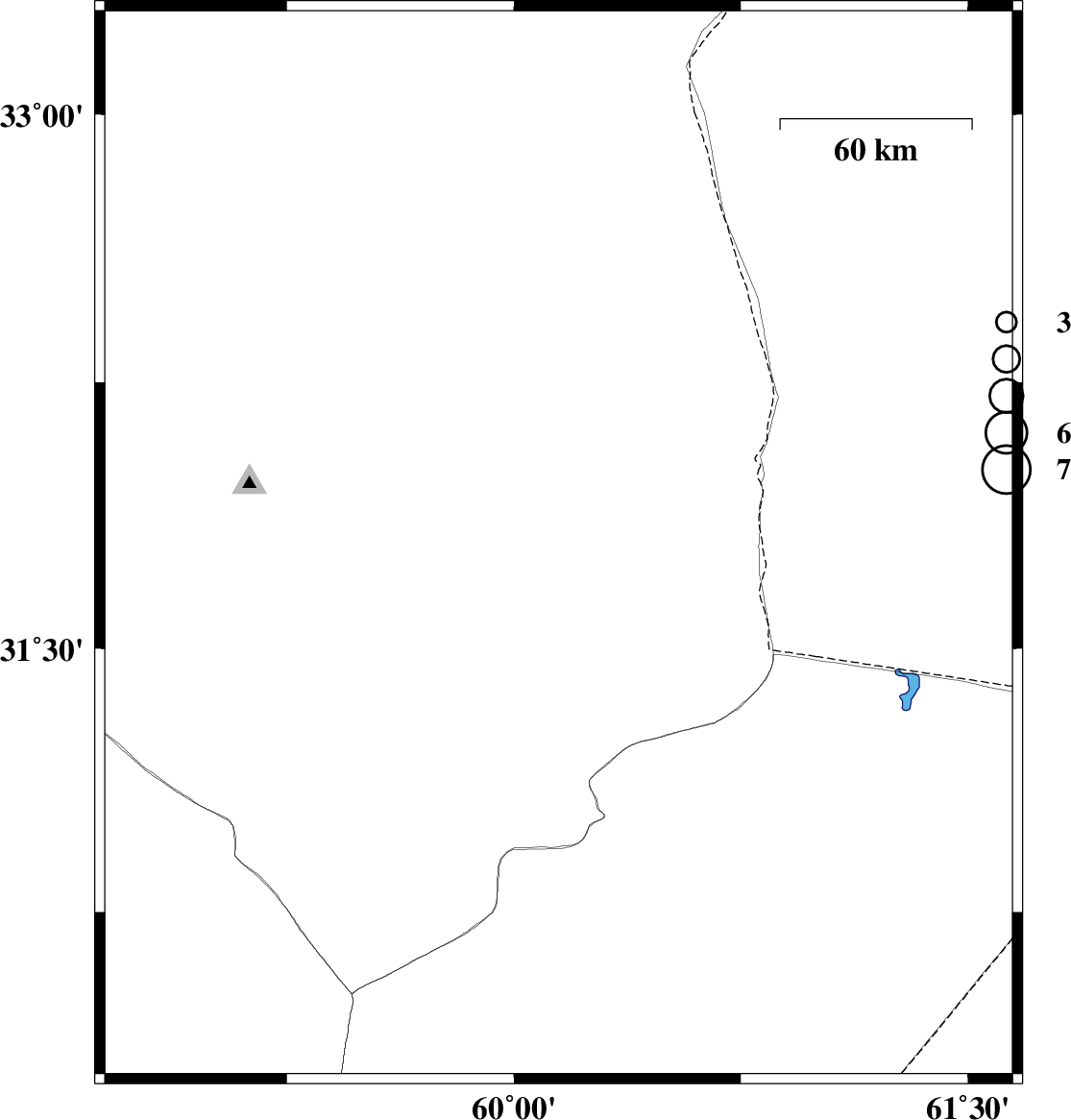 2017/04/04 15:49:25.2 20:19:25.2 31.78860.14814 ML2.8 Khorasan(south) Province, 30 km North-East of Nehbandan