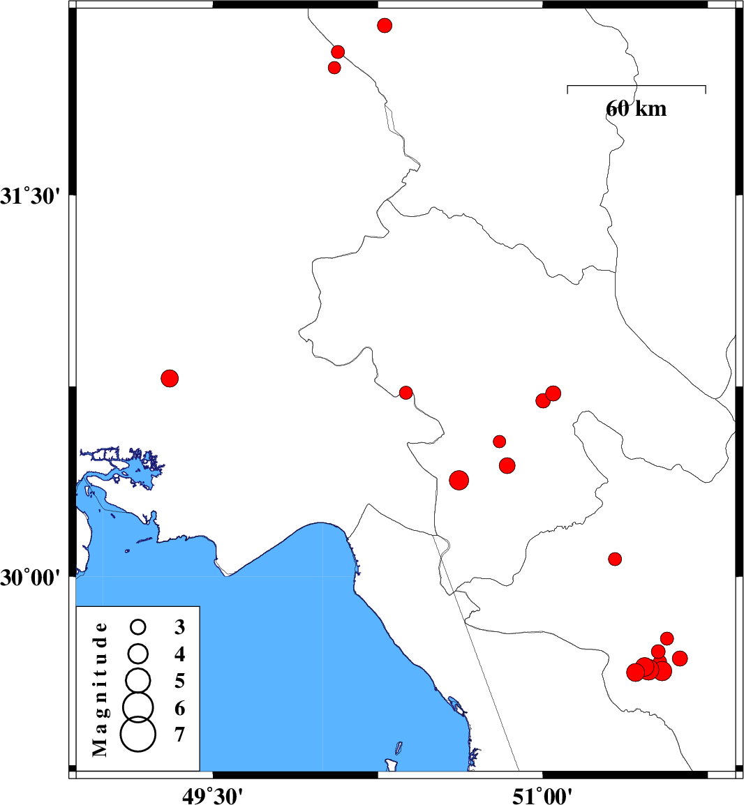 2017/03/19 | 12:14:54.7 | 15:44:54.7 | 29.702 | 51.525 | 18 | ML2.8 | Fars Province, 15 km -West of Kazerun | ||