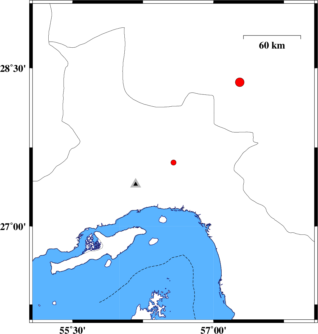 2017/03/30 | 04:36:10.1 | 09:06:10.1 | 27.606 | 56.575 | 14 | ML2.6 | Hormozgan Province, 55 km North-East of Bandar-e abbas | ||