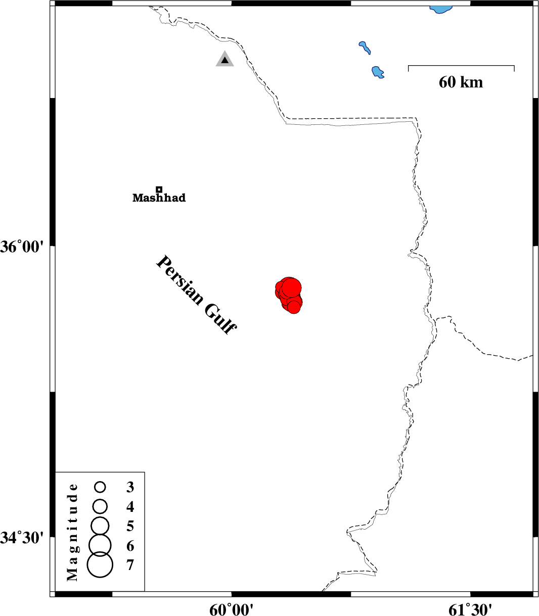 2017/04/05 06:09:10.6 10:39:10.6 35.78560.36114 ML6 Khorasan(center) Province, 47 km -East of Fariman