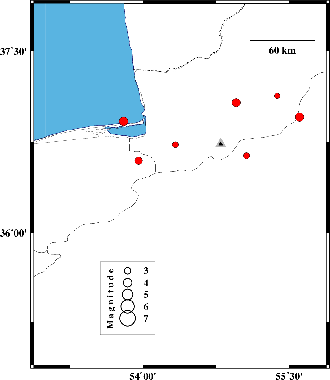 | 2017/03/20 | 09:17:14.1 | 12:47:14.1 | 36.672 | 53.12 | 15 | ML4 | Mazandaran Province, 13 km North of Sari | ||