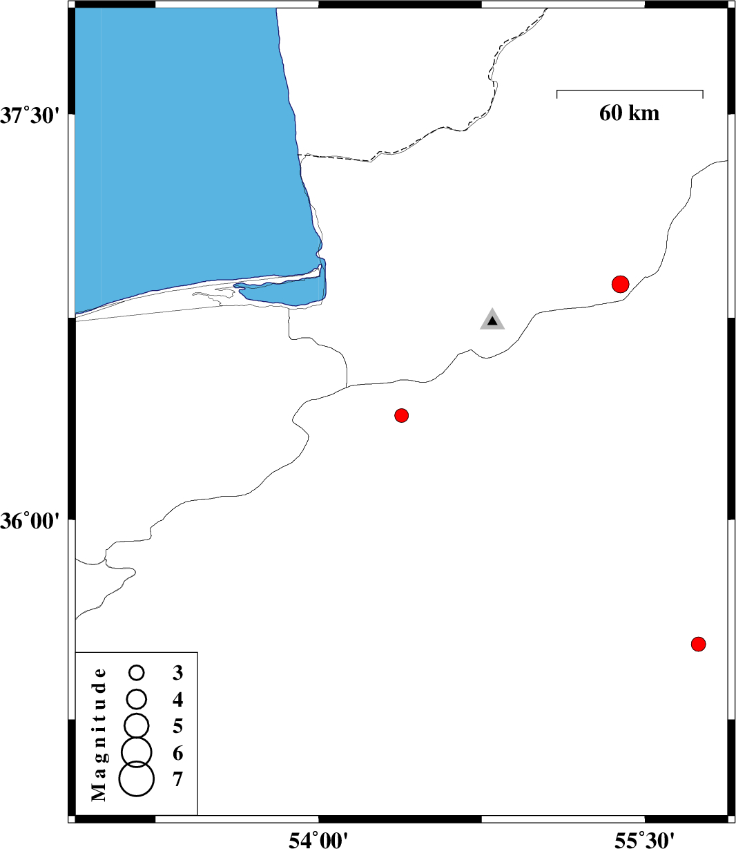 | 2017/03/31 | 12:05:37.2 | 16:35:37.2 | 36.874 | 55.387 | 6 | ML3.5 | Golestan Province, 40 km South of Minodasht |