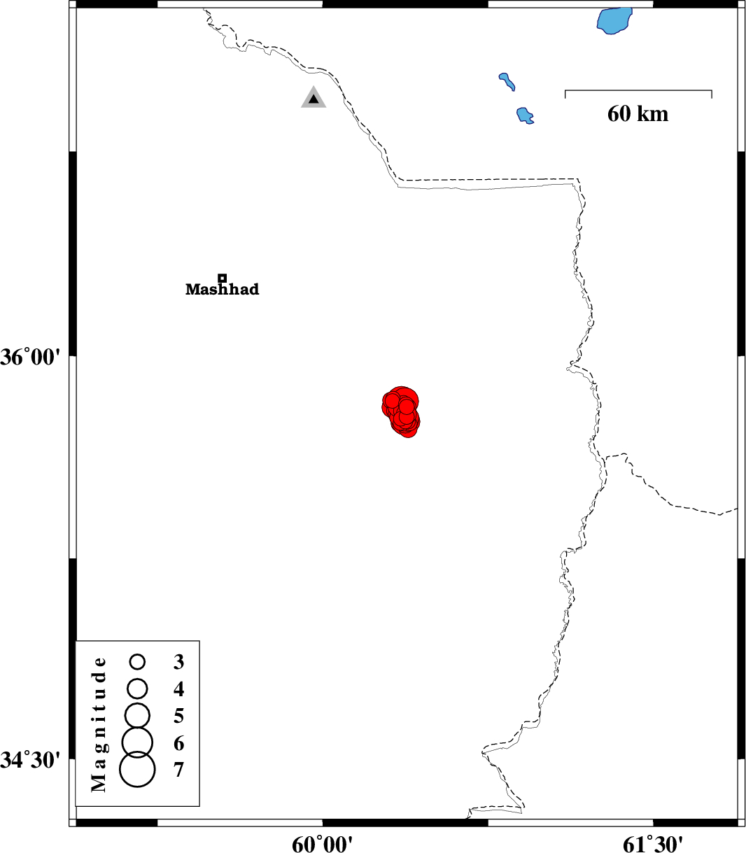 2017/04/05 06:09:10.6 10:39:10.6 35.78560.36114 ML6 Khorasan(center) Province, 47 km -East of Fariman