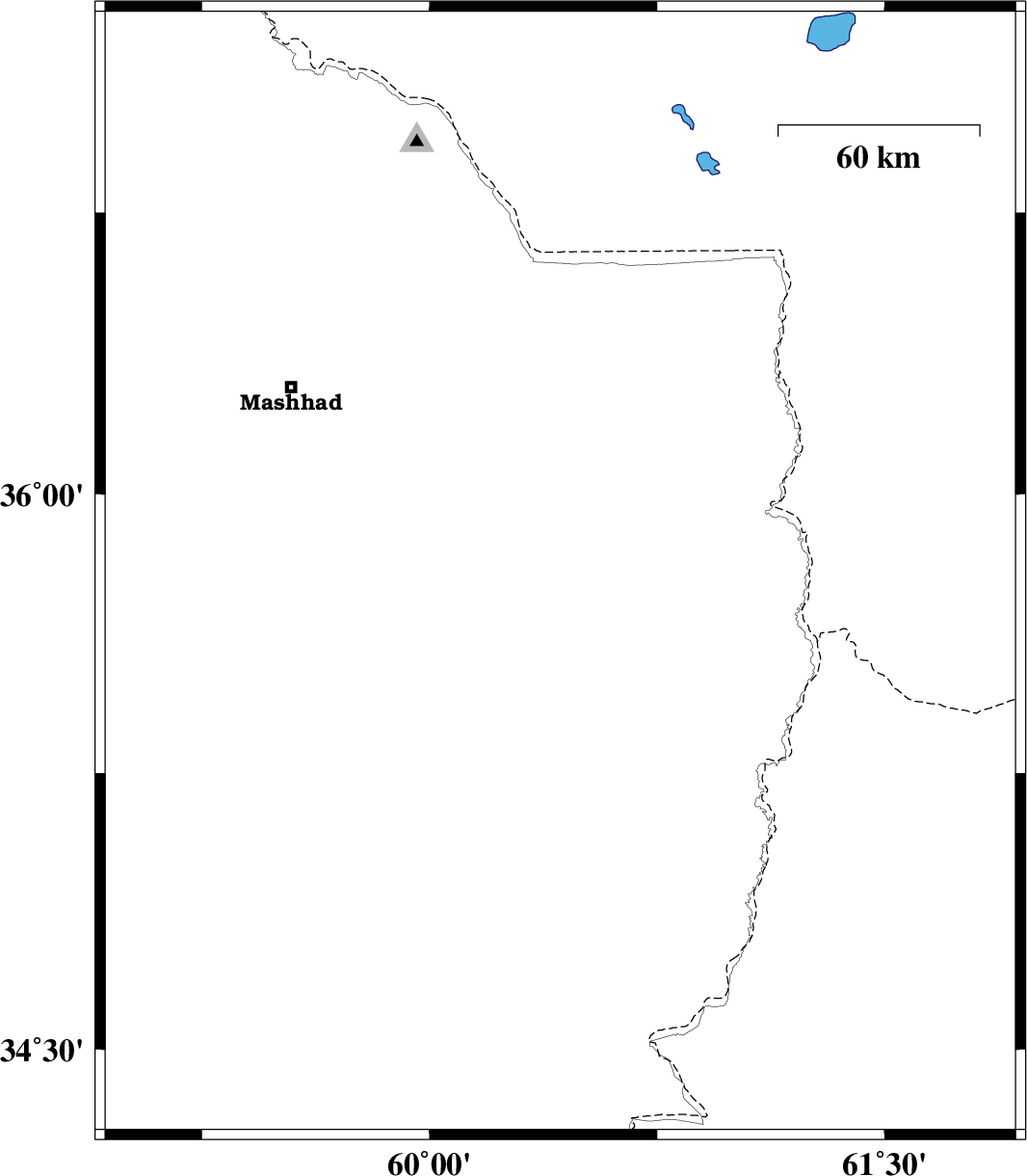 | 2017/04/08 | 04:02:43.3 | 08:32:43.3 | 35.71 | 60.391 | 15 | ML3 | Khorasan(center) Province, 49 km -East of Fariman | ||