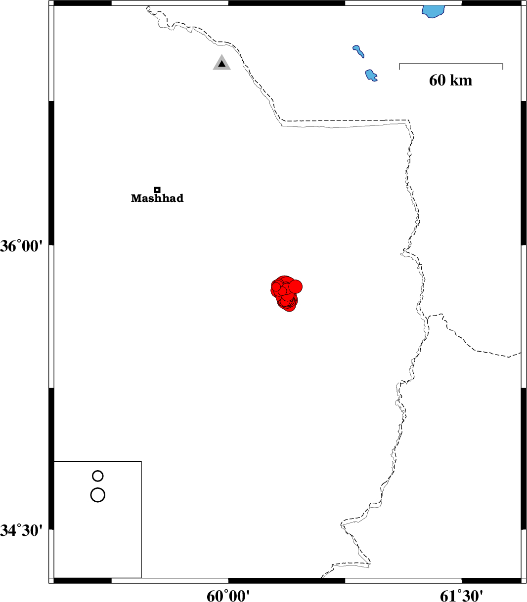 | 2017/04/08 | 02:19:11.6 | 06:49:11.6 | 35.726 | 60.378 | 15 | ML3 | Khorasan(center) Province, 48 km -East of Fariman | ||