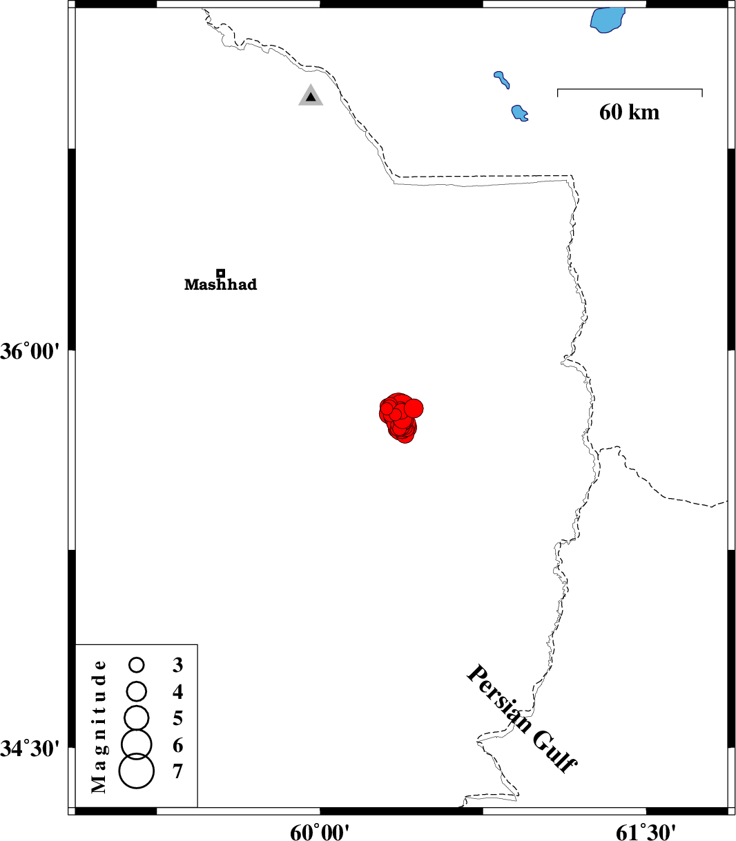 | 2017/04/08 | 02:19:11.6 | 06:49:11.6 | 35.726 | 60.378 | 15 | ML3 | Khorasan(center) Province, 48 km -East of Fariman | ||