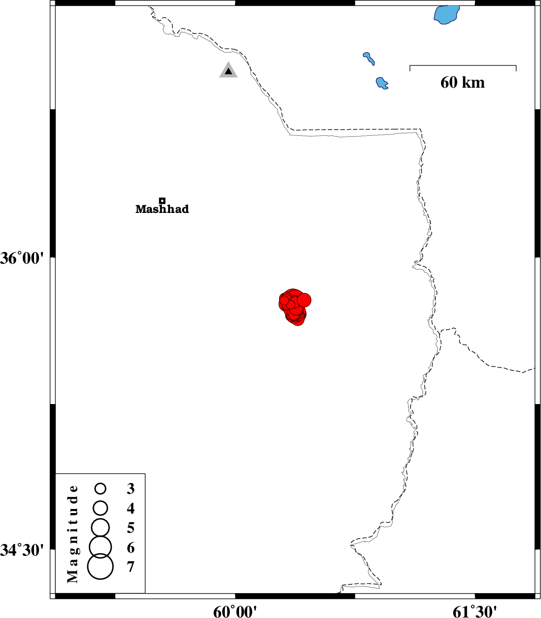 2017/04/05 06:09:10.6 10:39:10.6 35.78560.36114 ML6 Khorasan(center) Province, 47 km -East of Fariman
