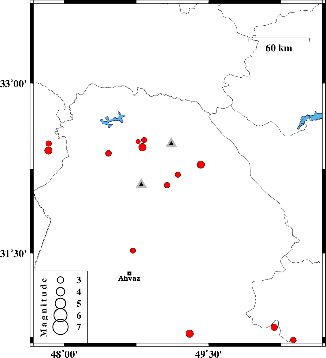 | 2017/04/12 | 14:09:59.7 | 18:39:59.7 | 32.489 | 48.767 | 18 | ML2.1 | Khoozestan Province, 34 km North-West of Lali | ||