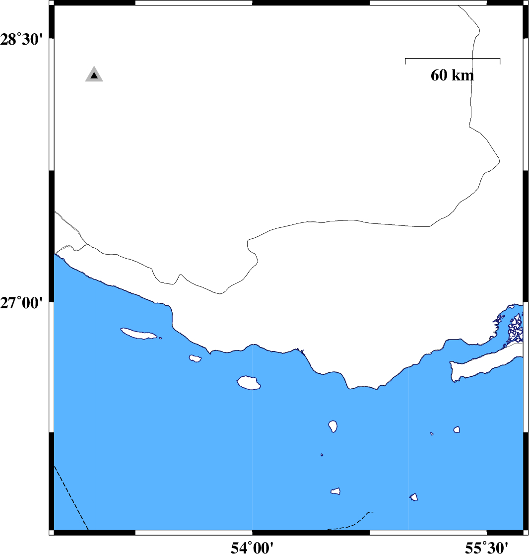 | 2017/03/21 | 07:30:49.1 | 11:00:49.1 | 28.317 | 54.972 | 14 | ML3.1 | Fars Province, 64 km South-East of Darab | ||