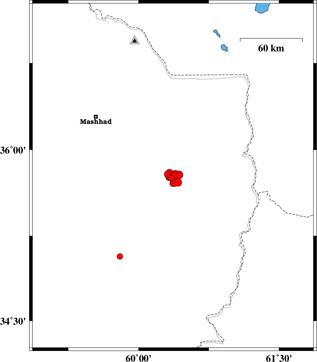 | 2017/04/16 | 18:02:05.5 | 22:32:05.5 | 35.78 | 60.391 | 16 | ML3 | Khorasan(center) Province, 50 km -East of Fariman | ||