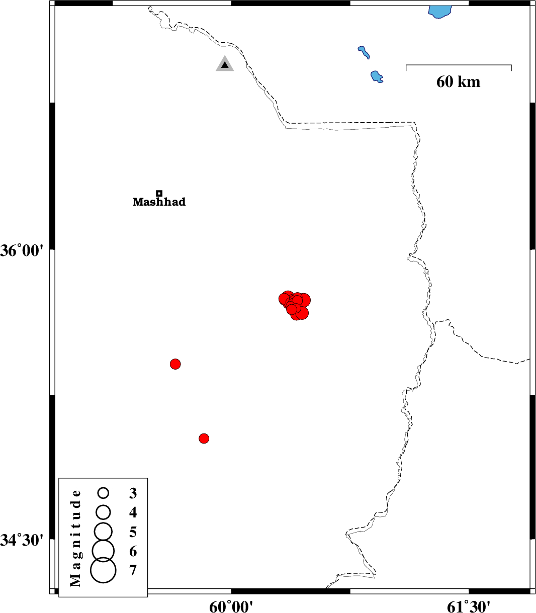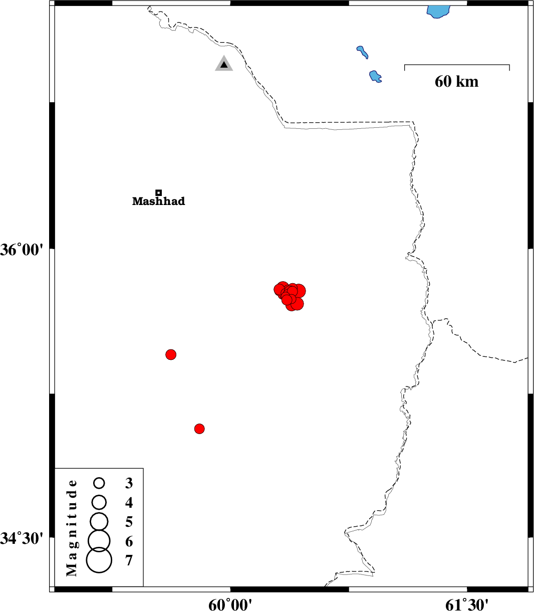 | 2017/04/16 | 18:02:05.5 | 22:32:05.5 | 35.78 | 60.391 | 16 | ML3 | Khorasan(center) Province, 50 km -East of Fariman | ||