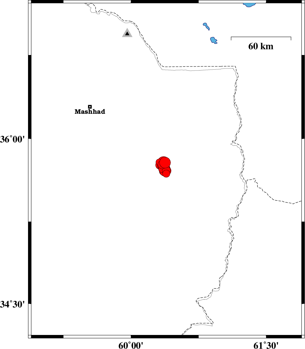 2017/04/05 06:09:10.6 10:39:10.6 35.78560.36114 ML6 Khorasan(center) Province, 47 km -East of Fariman