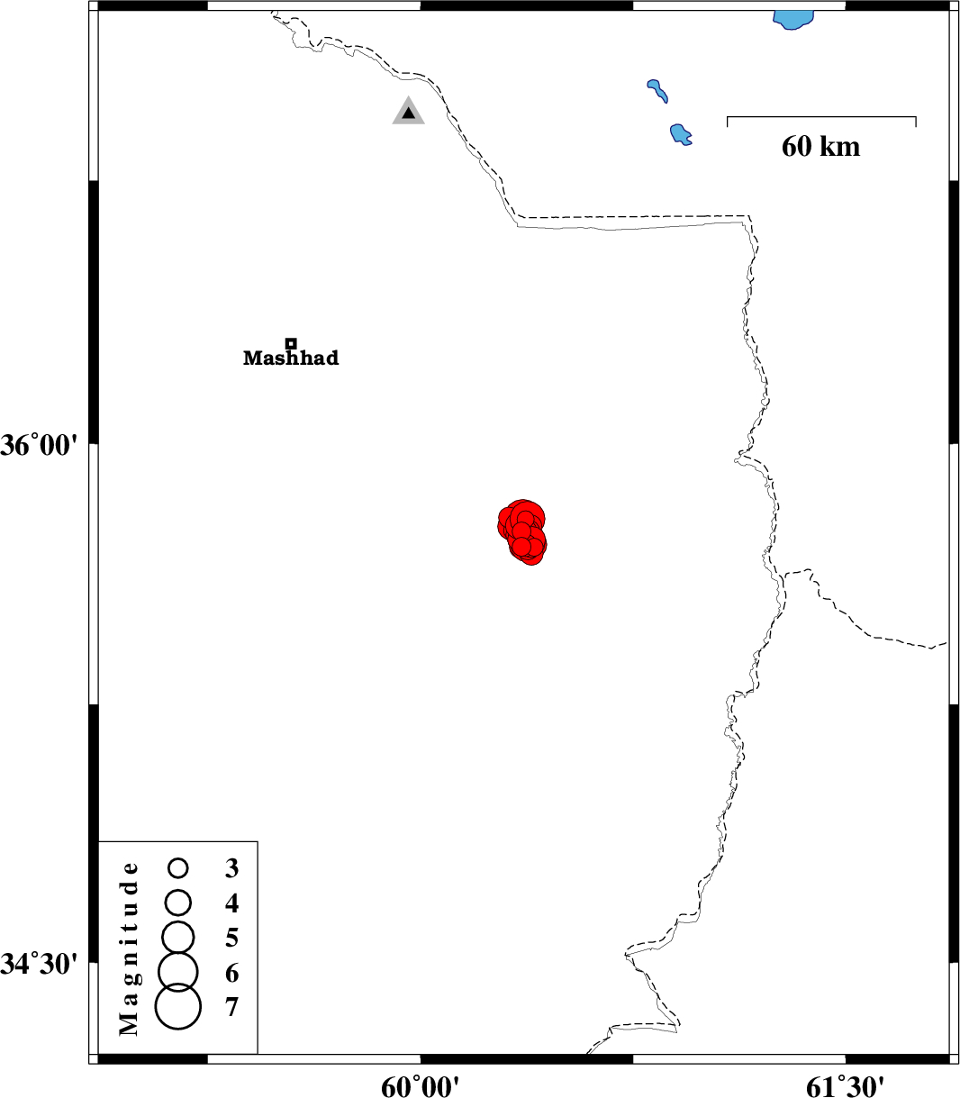 2017/04/05 06:09:10.6 10:39:10.6 35.78560.36114 ML6 Khorasan(center) Province, 47 km -East of Fariman
