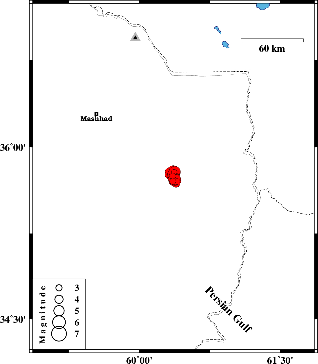 2017/04/05 06:09:10.6 10:39:10.6 35.78560.36114 ML6 Khorasan(center) Province, 47 km -East of Fariman