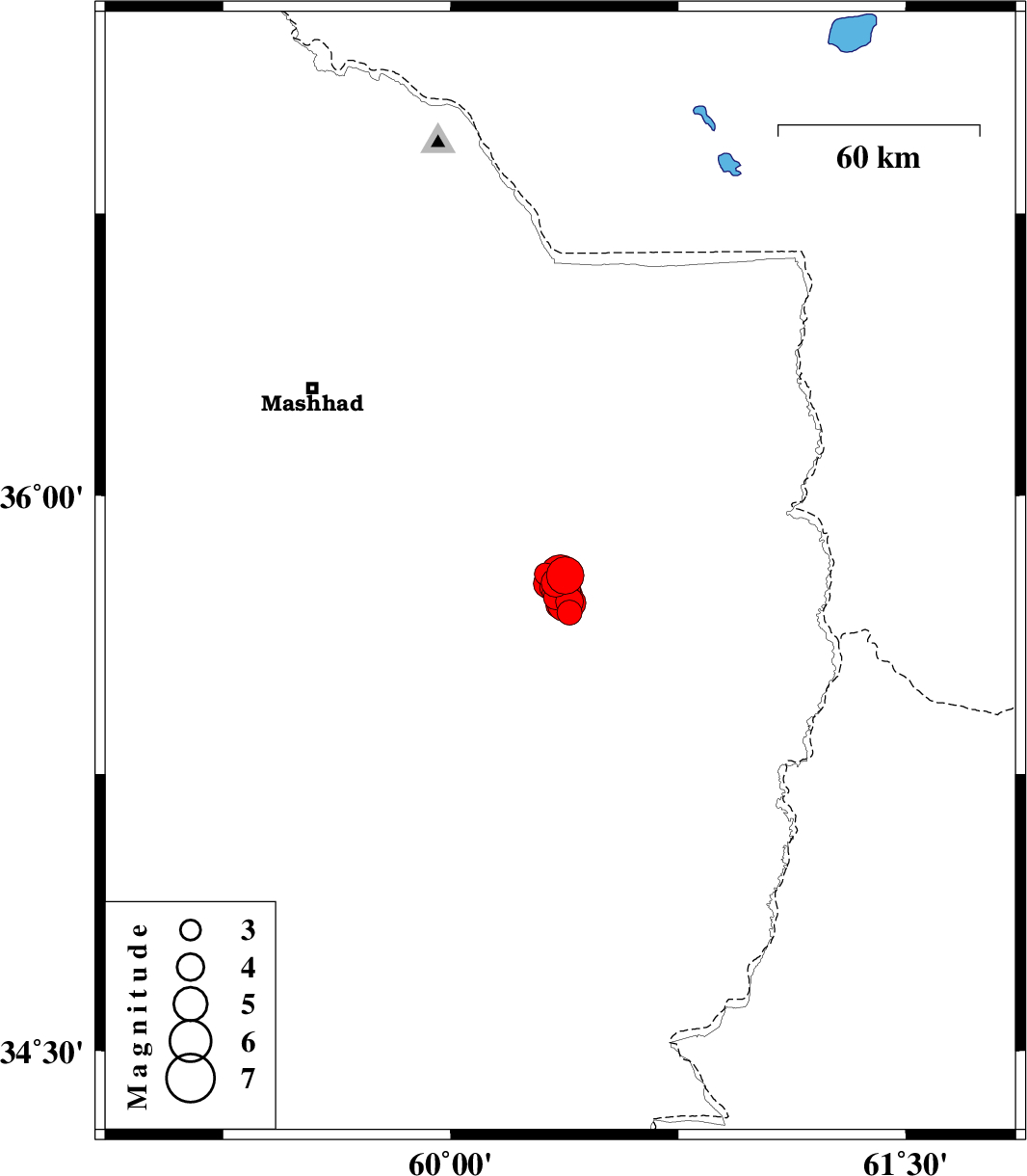2017/04/05 06:09:10.6 10:39:10.6 35.78560.36114 ML6 Khorasan(center) Province, 47 km -East of Fariman