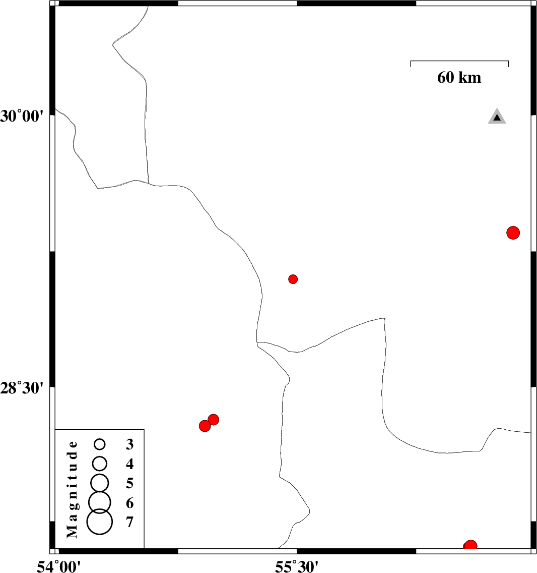 2017/03/21 | 07:30:49.1 | 11:00:49.1 | 28.317 | 54.972 | 14 | ML:3.1 | Fars Province, 64 km South-East of Darab |