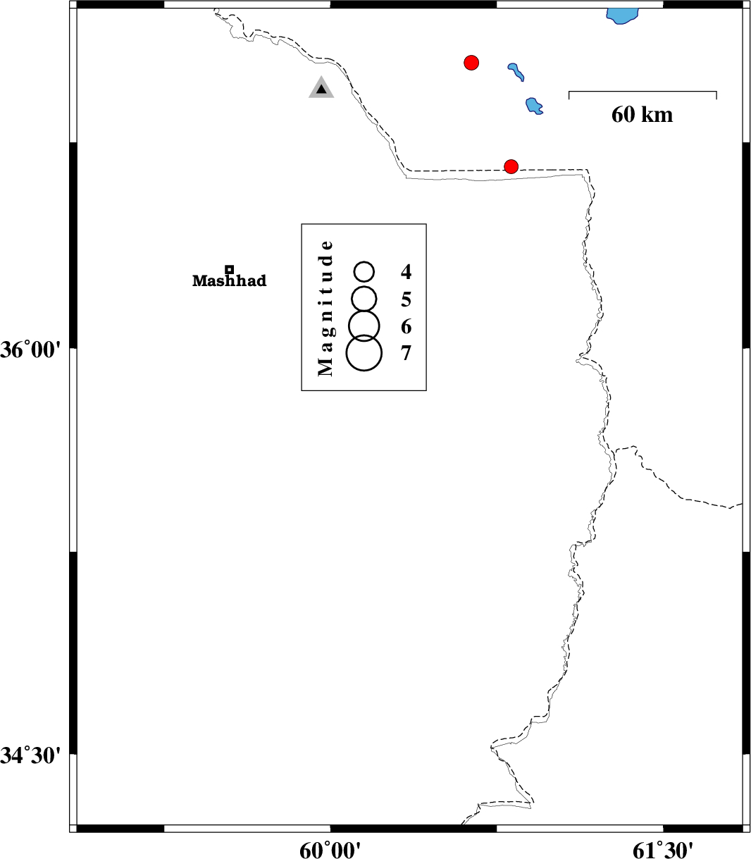 | 2017/04/16 | 18:02:05.5 | 22:32:05.5 | 35.78 | 60.391 | 16 | ML3 | Khorasan(center) Province, 50 km -East of Fariman | ||