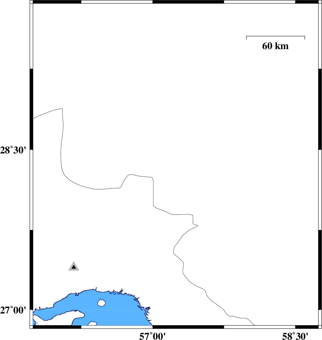 | 2017/04/09 | 17:41:24.2 | 22:11:24.2 | 28.064 | 57.269 | 18 | ML2.9 | Kerman Province, 44 km North-West of Kahnuj |