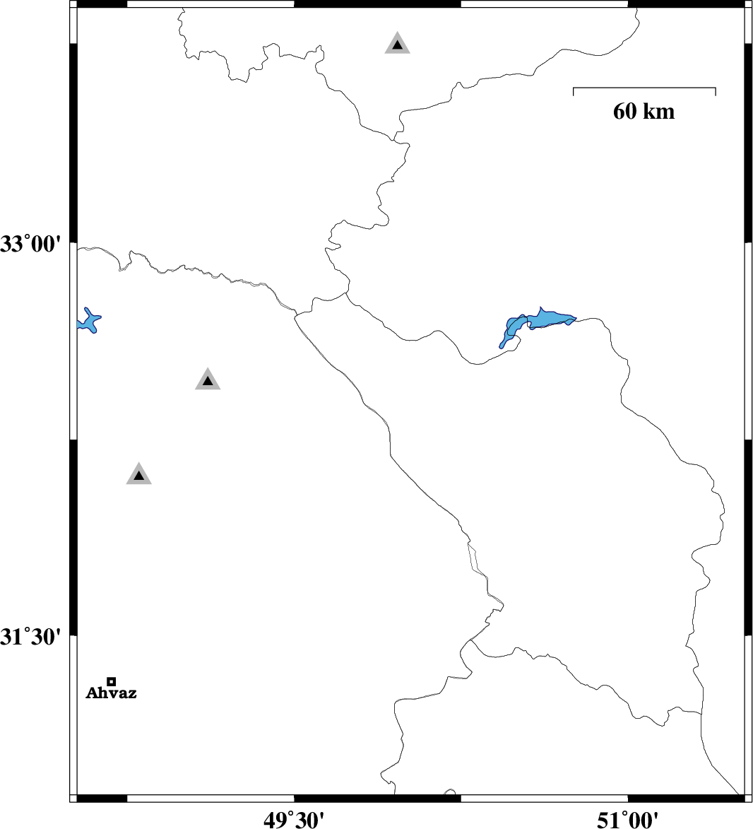 | 2017/03/27 | 01:56:53.6 | 06:26:53.6 | 31.523 | 48.713 | 15 | ML2.5 | Khoozestan Province, 23 km North of Ahvaz |