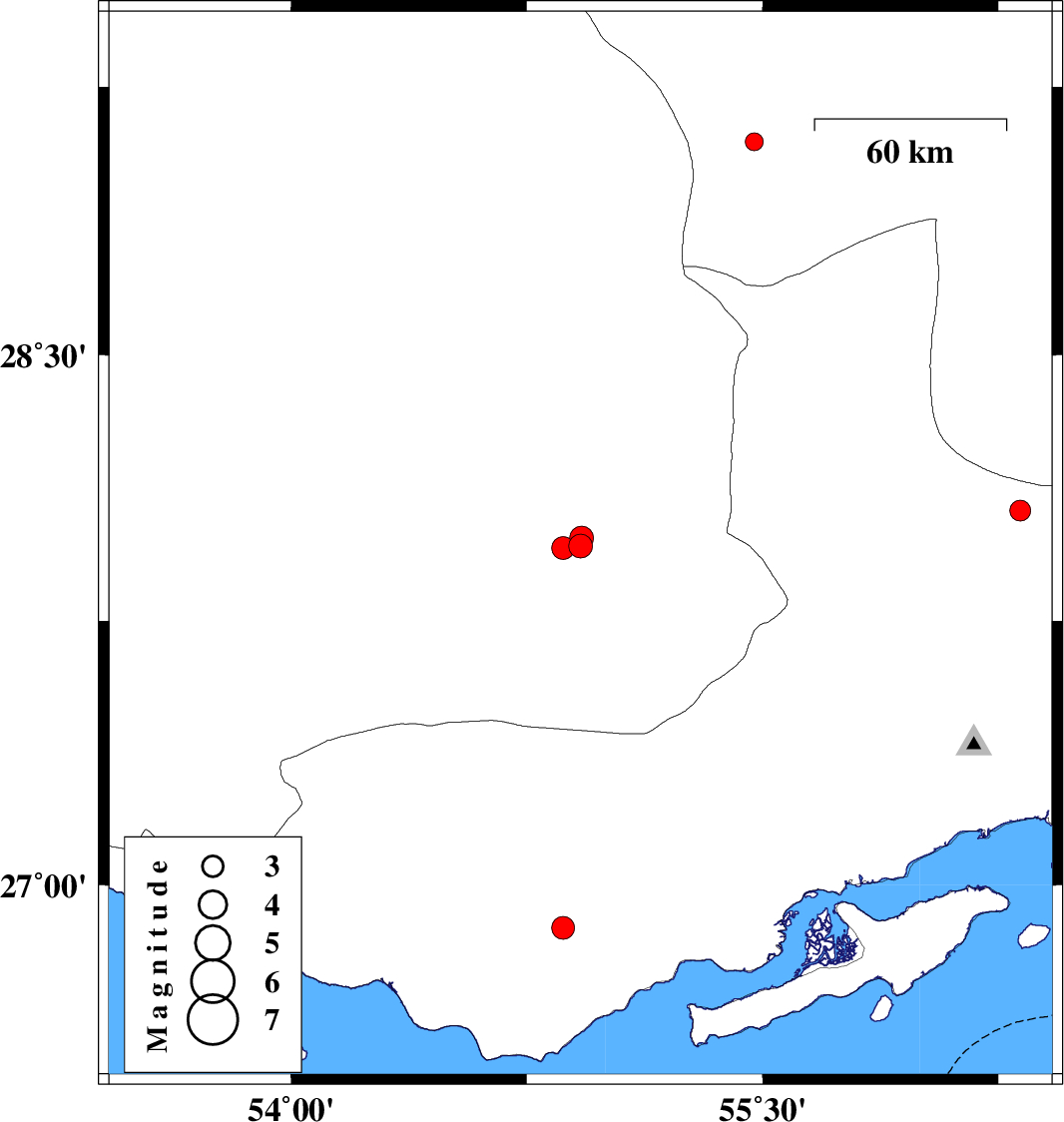 2017/04/15 04:37:21.5 09:07:21.5 26.87754.86617 ML3.3 Hormozgan Province, 39 km North of Bandar-e lengeh