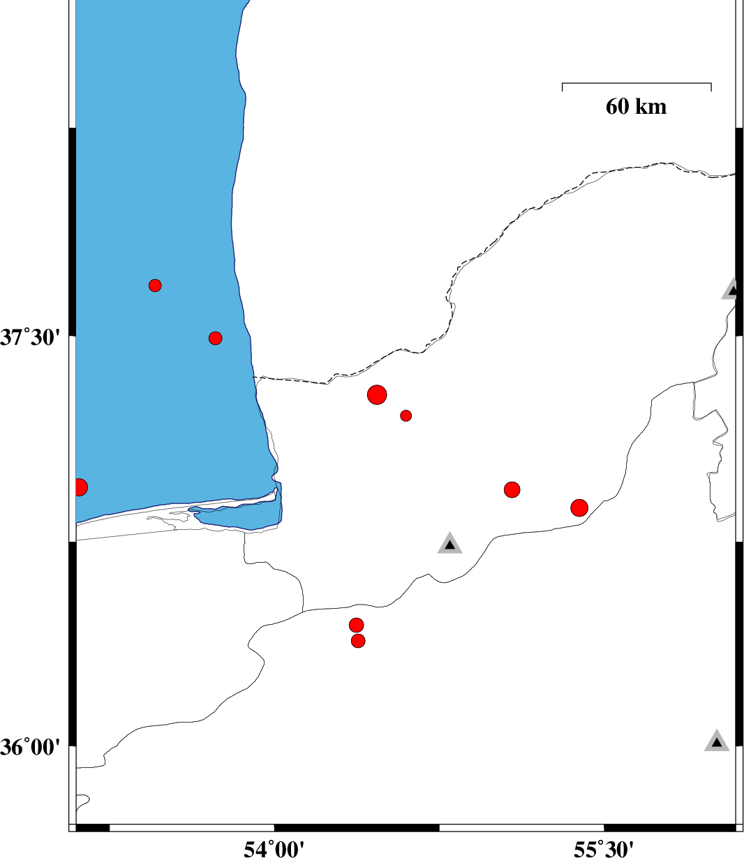 | 2017/04/09 | 05:40:01.7 | 10:10:01.7 | 36.445 | 54.372 | 15 | ML2.9 | Semnan Province, 31 km North of Damghan | ||