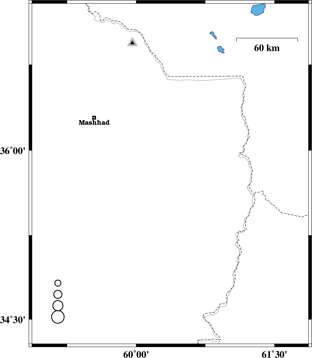 2017/04/05 06:09:10.6 10:39:10.6 35.78560.36114 ML6 Khorasan(center) Province, 47 km -East of Fariman