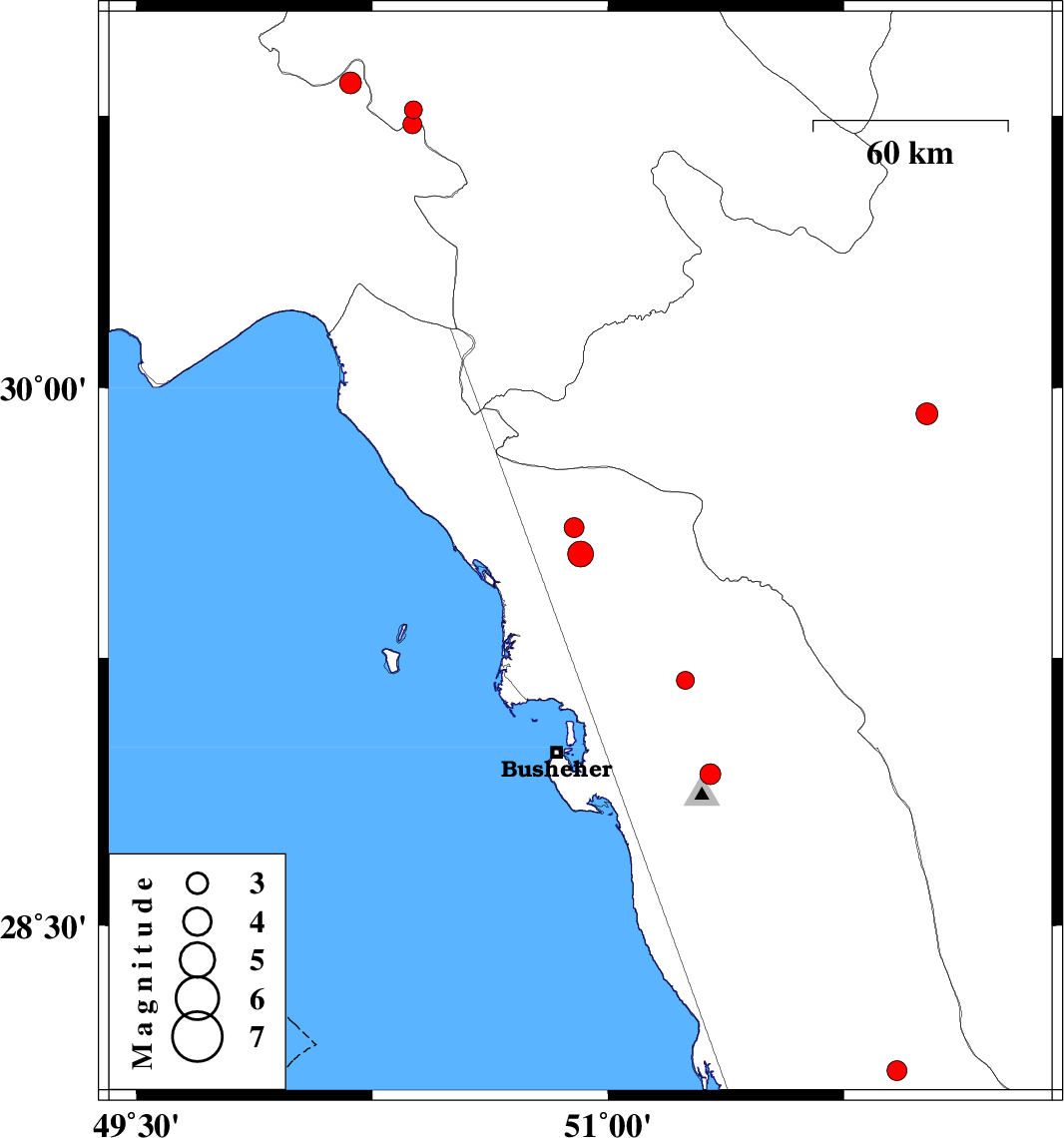 | 2017/03/31 | 08:53:26.9 | 13:23:26.9 | 28.092 | 51.918 | 6 | ML2.8 | Bushehr Province, 33 km North-West of Bandar-e kangan | ||