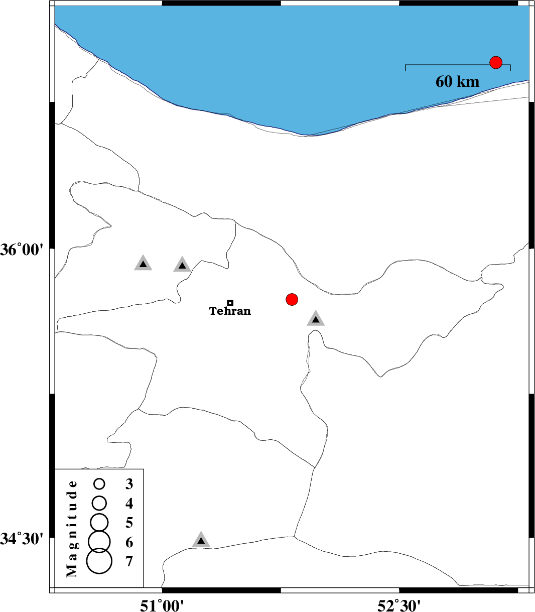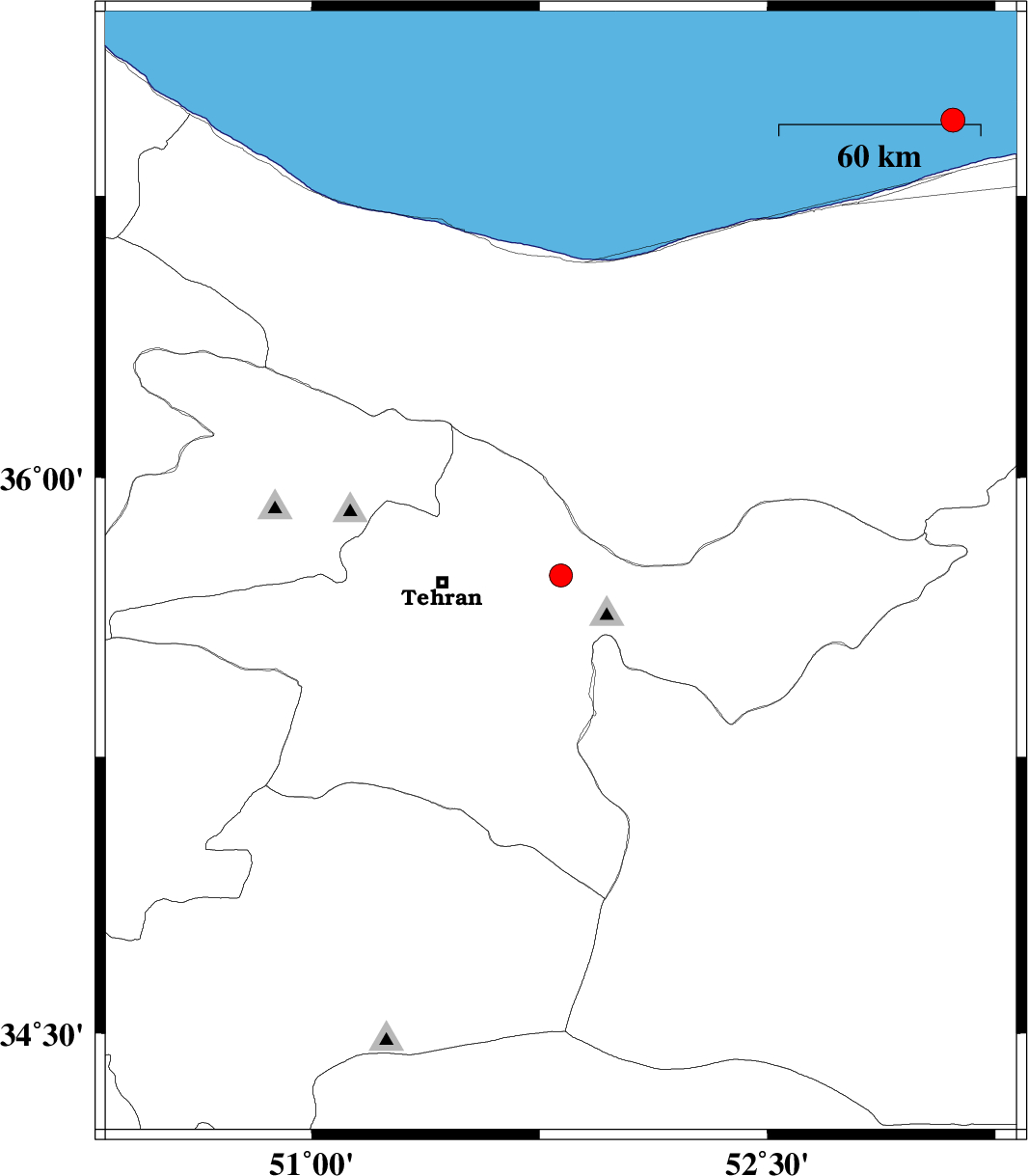 | 2017/04/24 | 11:09:12.2 | 15:39:12.2 | 36.95 | 53.111 | 14 | ML3.5 | Caspian Sea, 44 km North of Sari |