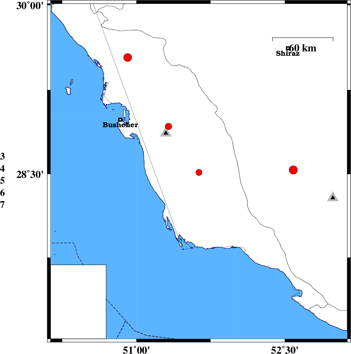 2017/04/22 | 05:01:57.4 | 09:31:57.4 | 28.925 | 51.325 | 14 | ML3 | Bushehr Province, 8 km of Ahram |