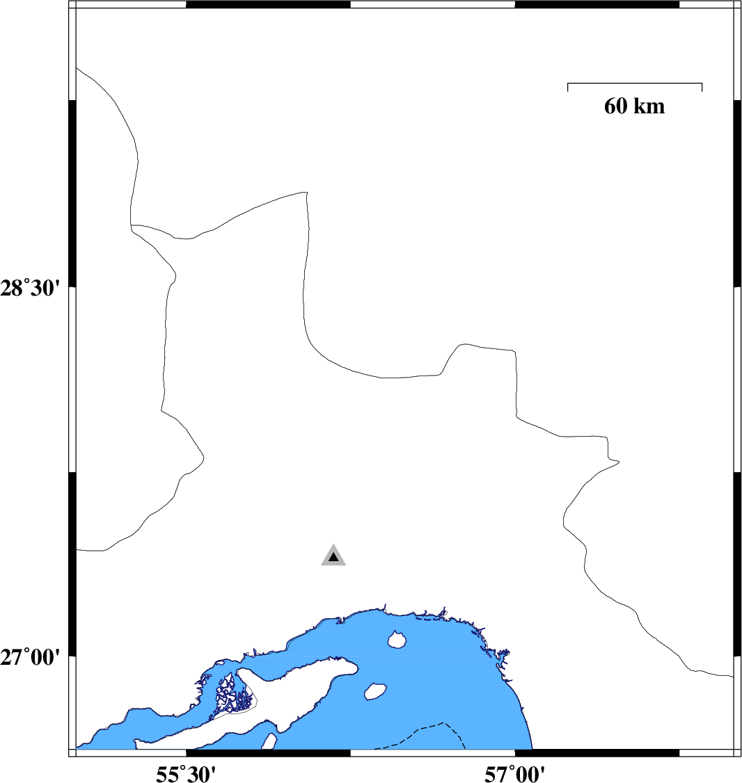 | 2017/04/28 | 05:07:08.3 | 09:37:08.3 | 27.652 | 56.944 | 14 | ML3.2 | Hormozgan Province, 38 km North-West of Dehbarez | ||