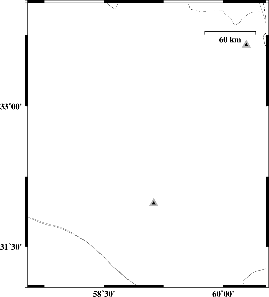| 2017/04/04 | 15:49:25.2 | 20:19:25.2 | 31.788 | 60.148 | 14 | ML2.8 | Khorasan(south) Province, 30 km North-East of Nehbandan | ||