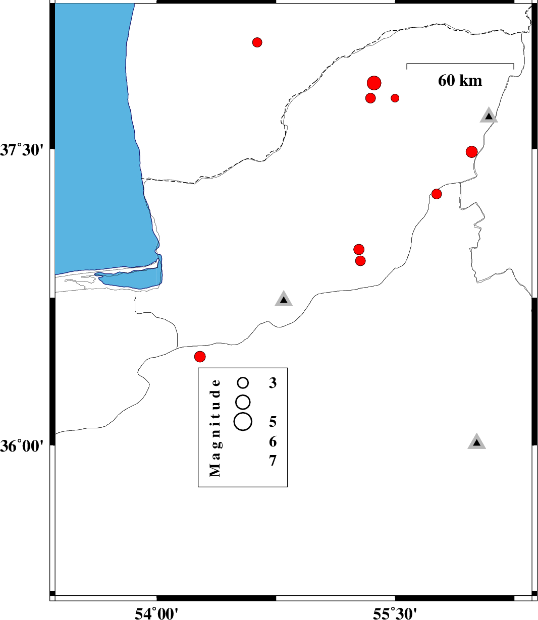 | 2017/04/09 | 05:40:01.7 | 10:10:01.7 | 36.445 | 54.372 | 15 | ML2.9 | Semnan Province, 31 km North of Damghan | ||
