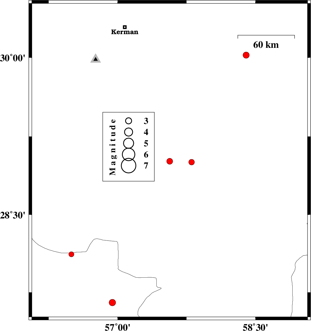 | 2017/05/03 | 17:28:49.2 | 21:58:49.2 | 29.013 | 57.567 | 27 | ML3 | Kerman Province, 42 km North-West of Jiroft | ||