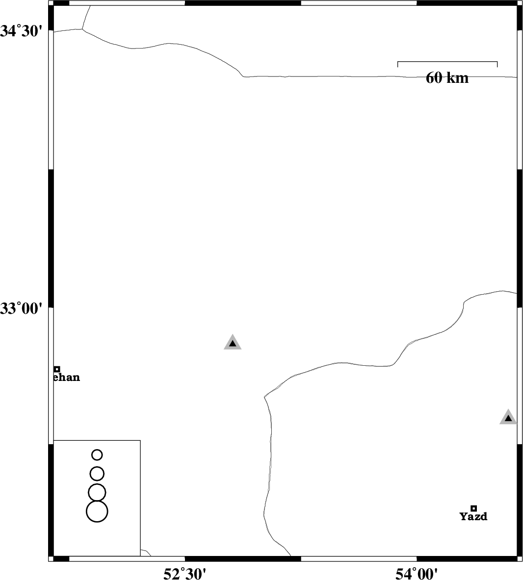 2017/05/08 | 09:13:11.5 | 13:43:11.5 | 33.132 | 53.149 | 15 | ML2.8 | Esfahan Province, 30 km North of Nain |