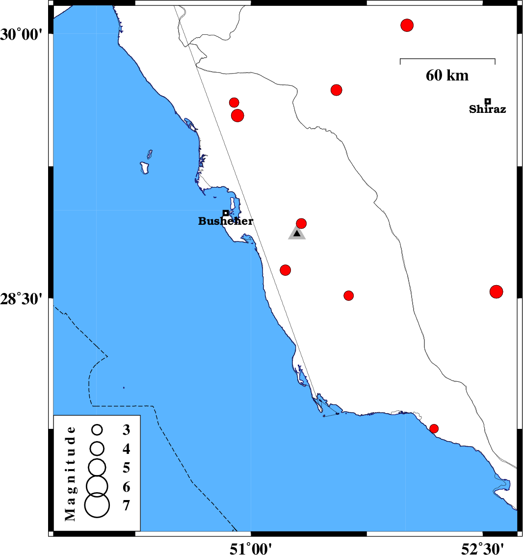 | 2017/04/18 | 01:28:48.8 | 05:58:48.8 | 29.612 | 50.891 | 18 | ML2.8 | Bushehr Province, 37 km -East of Bandar-e genaveh |