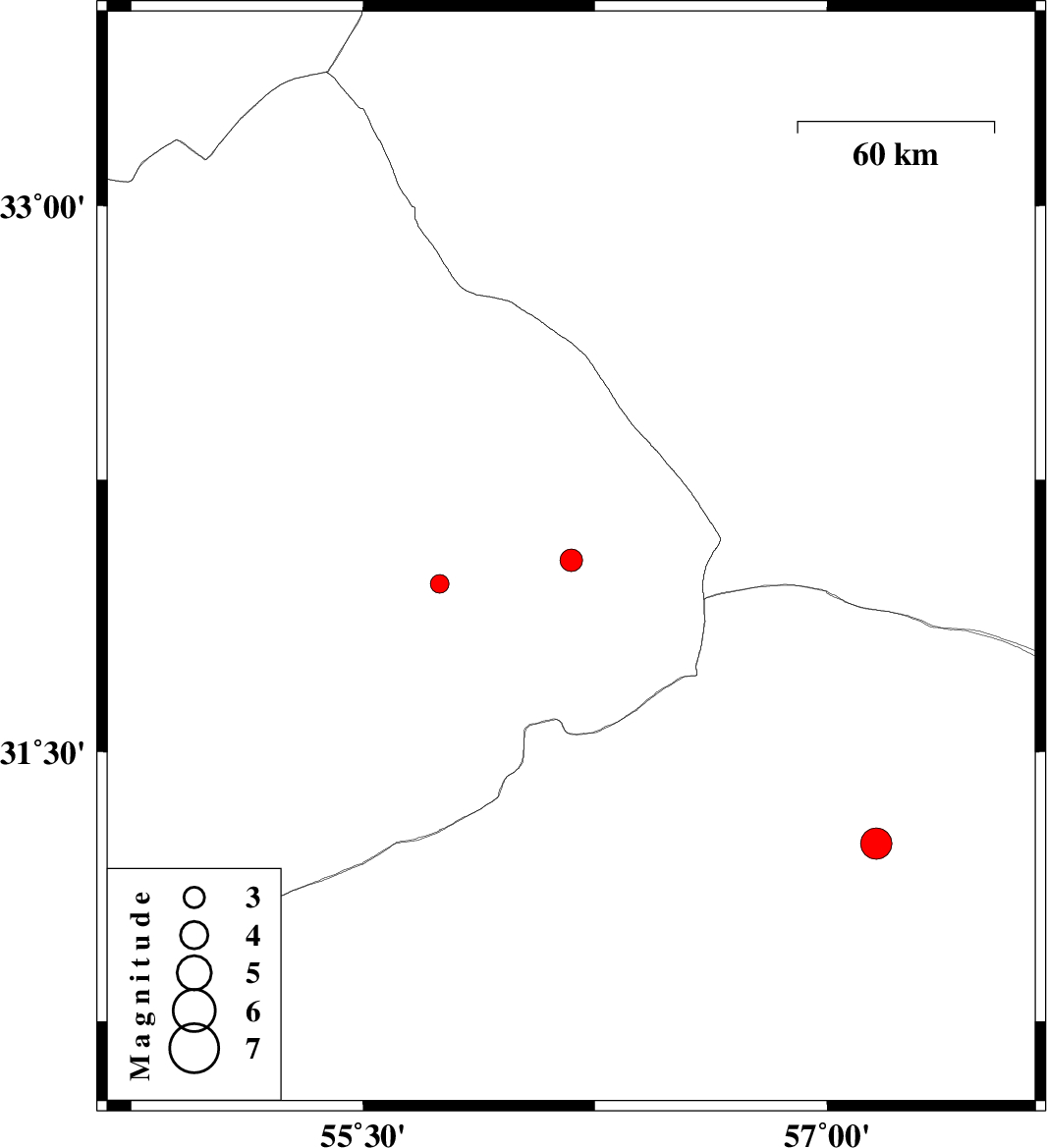 | 2017/05/11 | 01:26:57.1 | 05:56:57.1 | 32.029 | 56.173 | 14 | ML3.3 | Yazd Province, 87 km North-East of Bafq | ||