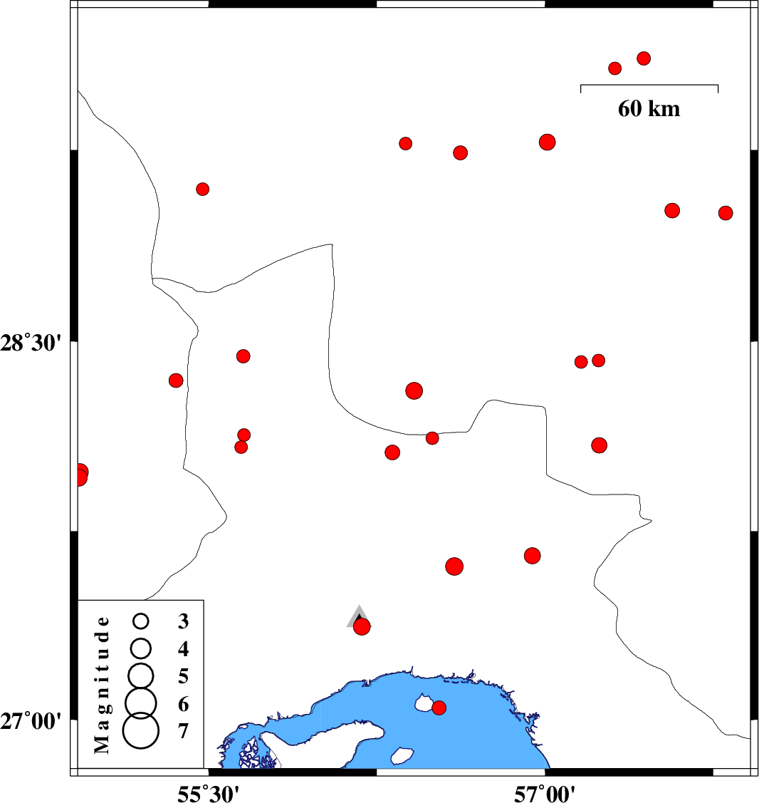 2017/04/28 | 05:07:08.3 | 09:37:08.3 | 27.652 | 56.944 | 14 | ML3.2 | Hormozgan Province, 38 km North-West of Dehbarez | ||