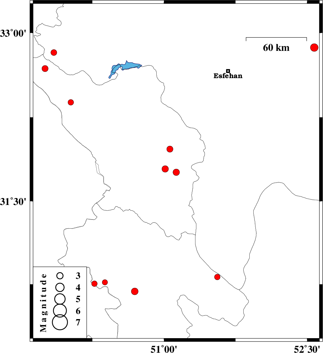 | 2017/04/30 | 01:54:20.5 | 06:24:20.5 | 32.825 | 49.847 | 15 | ML2.8 | Esfahan Province, 28 km South-West of Fereydunshahr | ||