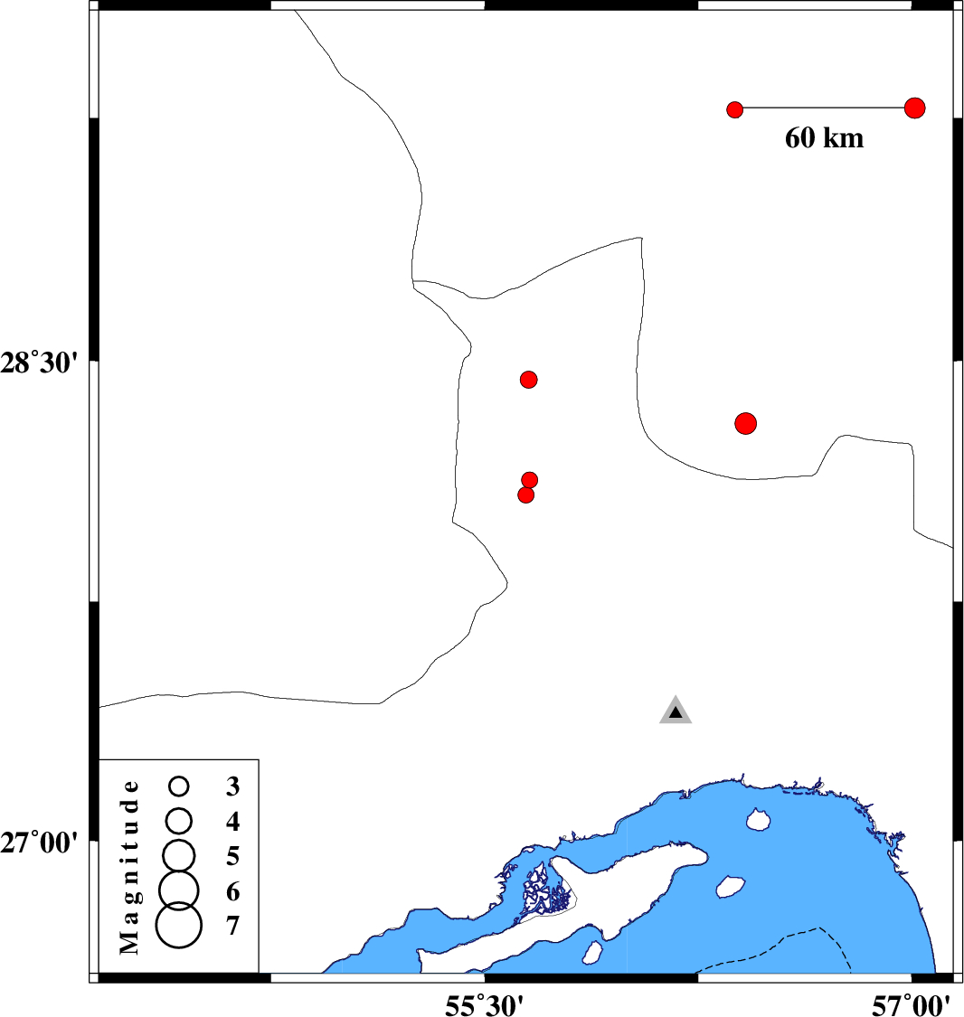 | 2017/05/10 | 19:04:36.0 | 23:34:36.0 | 28.441 | 55.654 | 7 | ML2.7 | Hormozgan Province, 28 km North-West of Hajiabad |