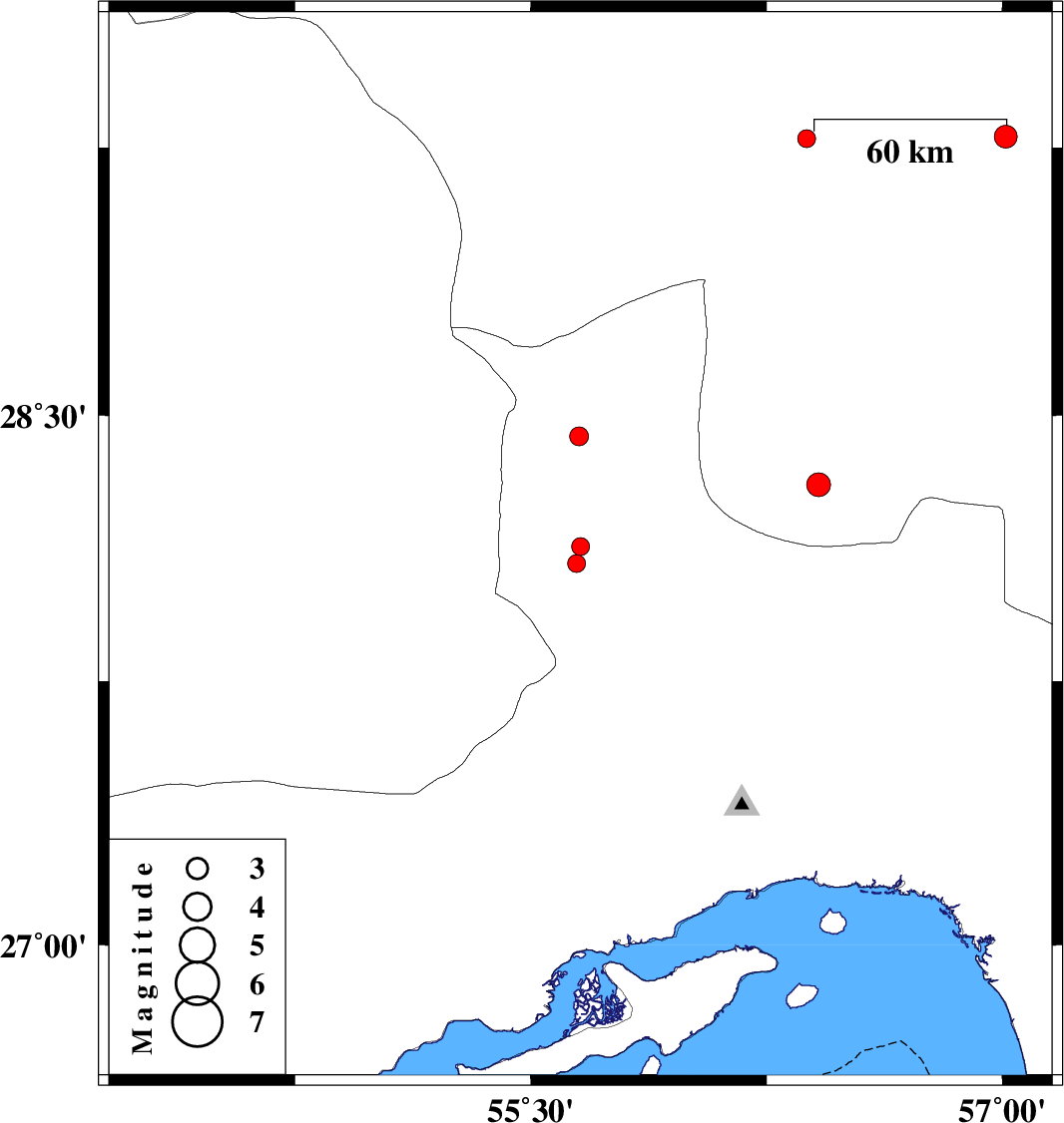 | 2017/05/10 | 19:04:36.0 | 23:34:36.0 | 28.441 | 55.654 | 7 | ML2.7 | Hormozgan Province, 28 km North-West of Hajiabad |