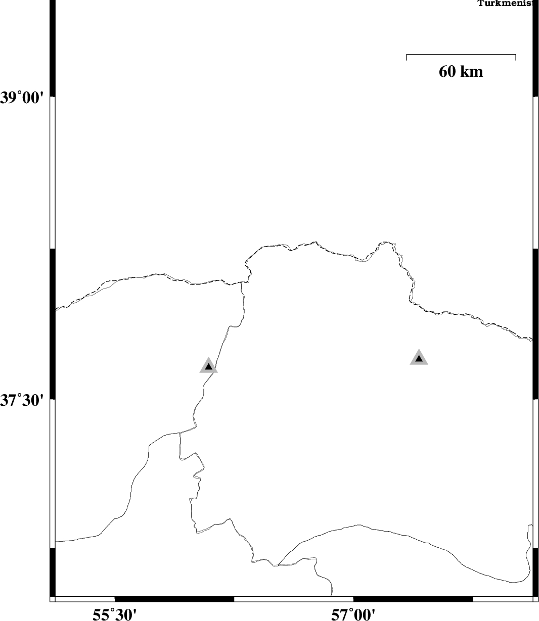 | 2017/05/14 | 07:26:38.3 | 11:56:38.3 | 37.617 | 57.298 | 17 | ML2.9 | Khorasan(north) Province, 16 km North of Bojnurd | ||