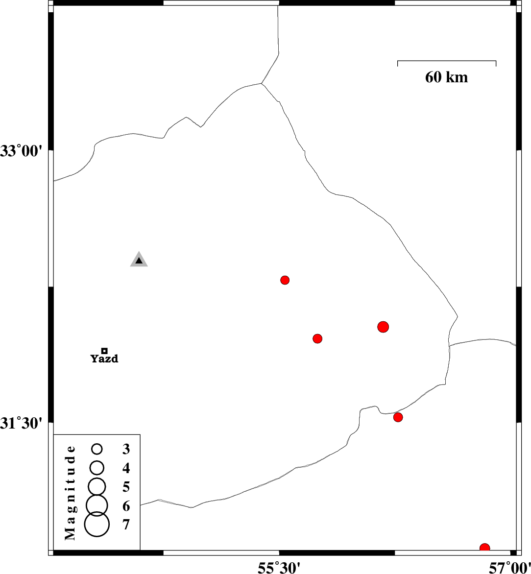 | 2017/05/10 | 06:10:12.2 | 10:40:12.2 | 31.964 | 55.748 | 16 | ML2.7 | Yazd Province, 52 km North-East of Bafq | ||