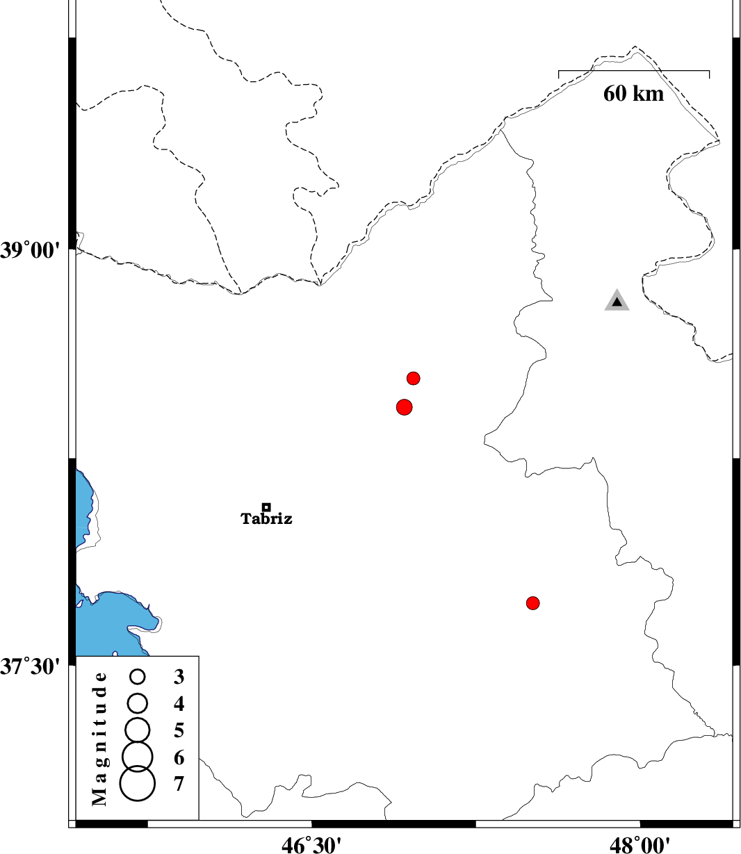 | 2017/04/29 | 10:14:22.4 | 14:44:22.4 | 38.537 | 46.963 | 14 | ML2.7 | Azarbaijan Sharghi Province, 12 km -West of Ahar |