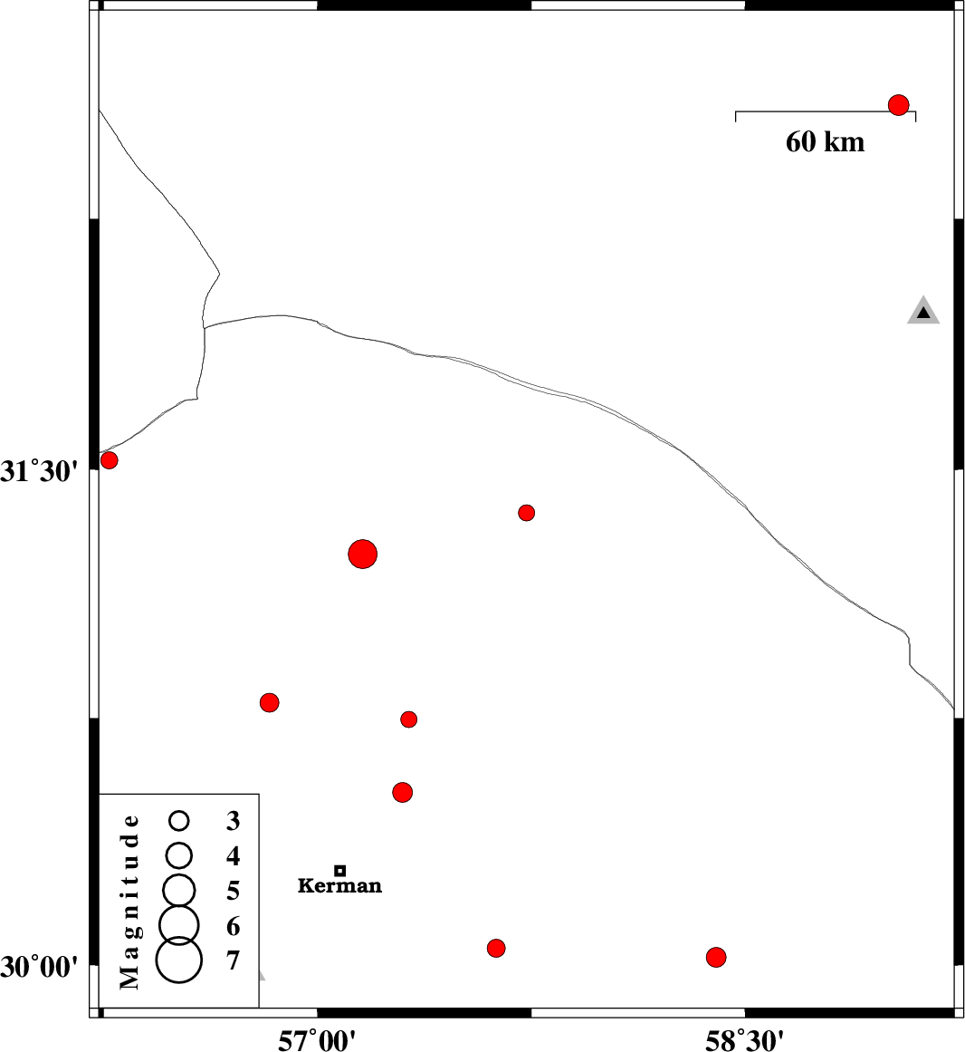 | 2017/05/13 | 04:57:47.2 | 09:27:47.2 | 30.746 | 57.321 | 14 | ML2.5 | Kerman Province, 56 km North-East of Kerman | ||
