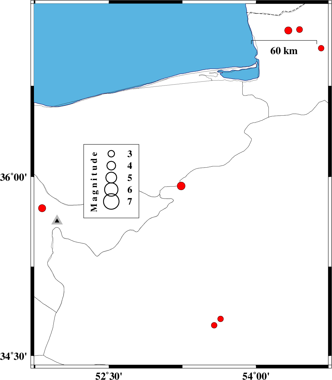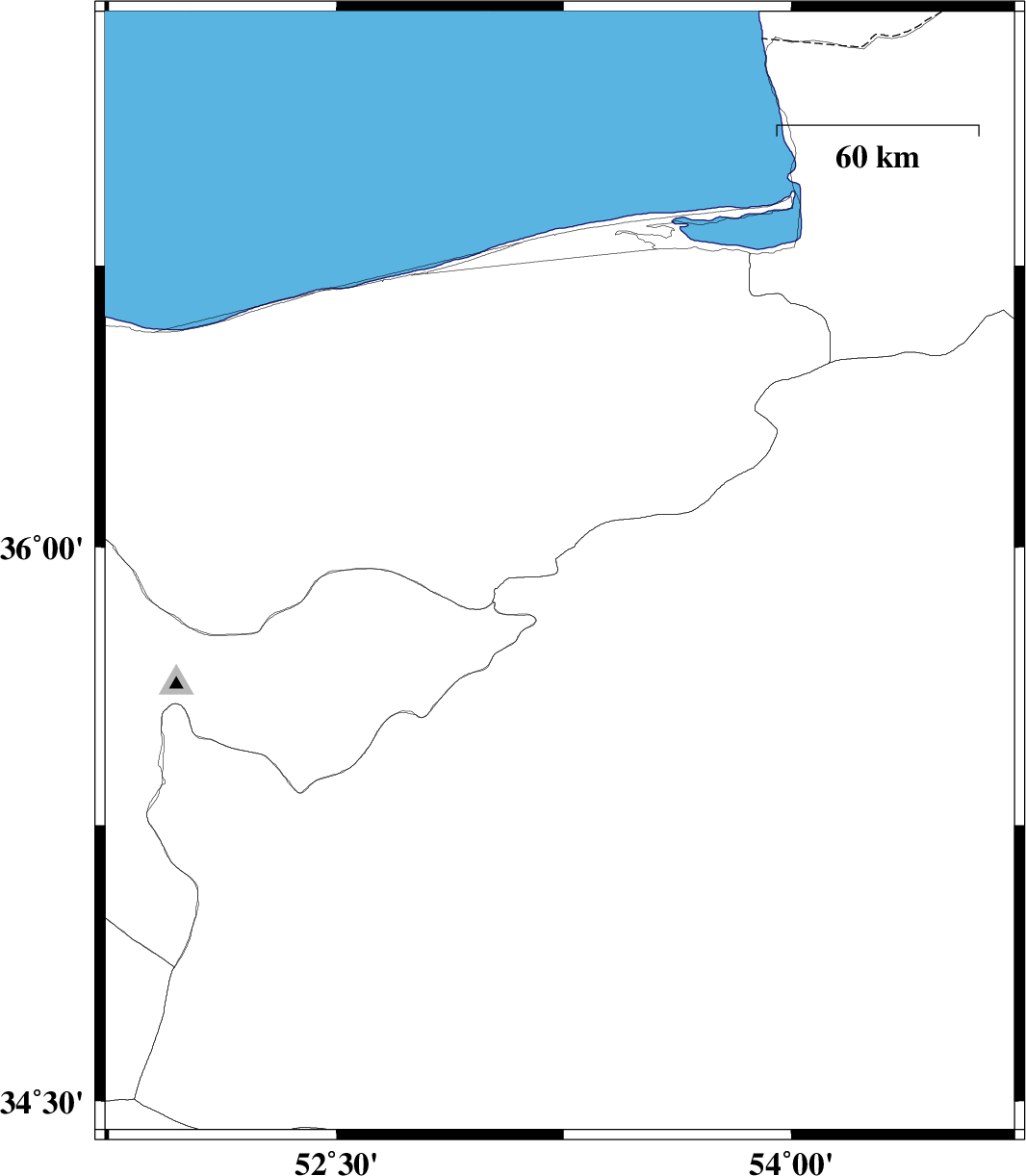 | 2017/04/28 | 03:20:23.0 | 07:50:23.0 | 35.738 | 51.82 | 14 | ML3.4 | Tehran Province, 23 km -West of Damavand |
