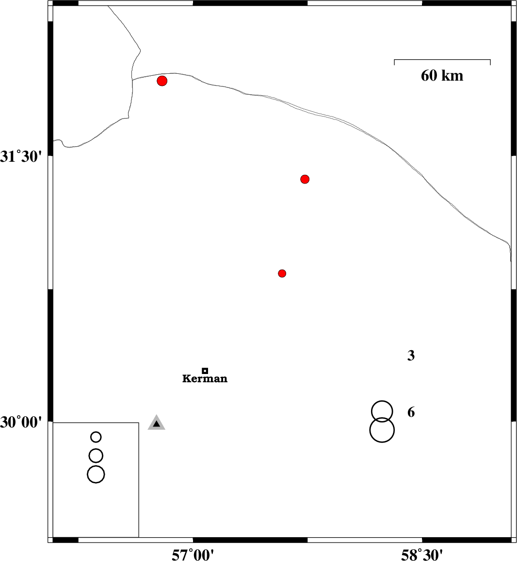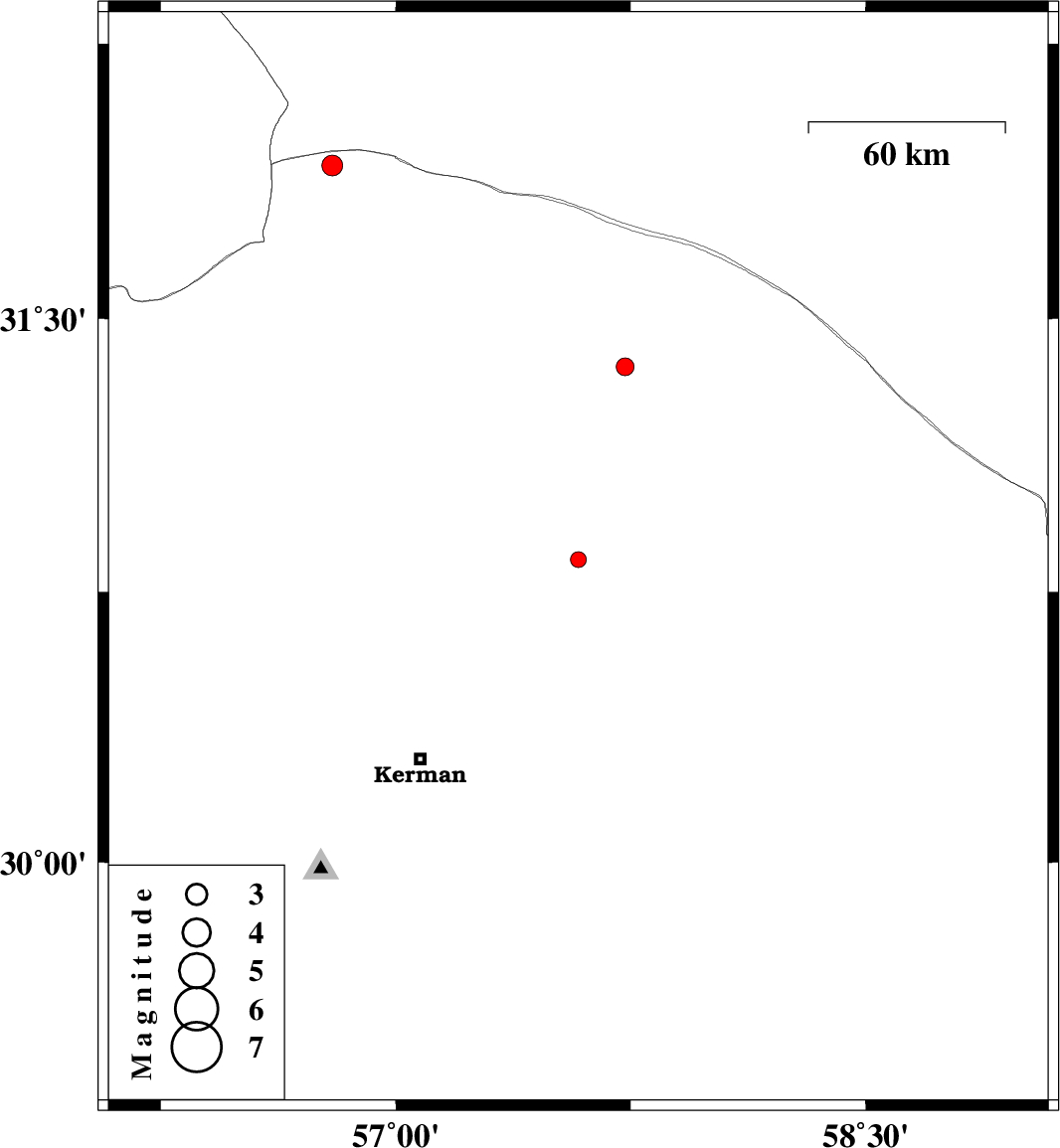 | 2017/05/28 | 20:03:49.8 | 00:33:49.8 | 31.369 | 57.733 | 15 | ML2.5 | Kerman Province, 88 km North-East of Ravar |