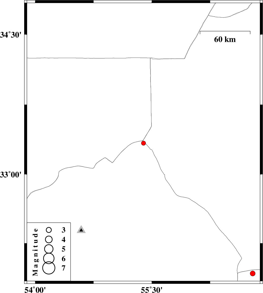 | 2017/05/29 | 19:52:18.2 | 00:22:18.2 | 31.919 | 56.798 | 15 | ML2.9 | Kerman Province, 73 km North of Ravar |
