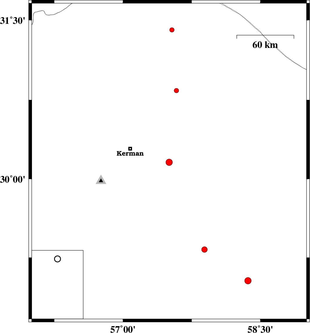 2017/06/05 | 15:34:22.0 | 20:04:22.0 | 30.159 | 57.504 | 14 | ML:3.2 | Kerman Province, 43 km South-East of Kerman | ||