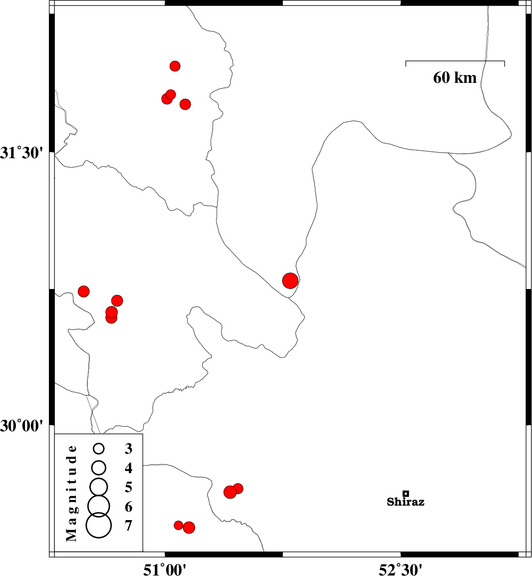 | 2017/06/03 | 11:21:56.1 | 15:51:56.1 | 29.627 | 51.415 | 14 | ML3.7 | Fars Province, 23 km -West of Kazerun | ||
