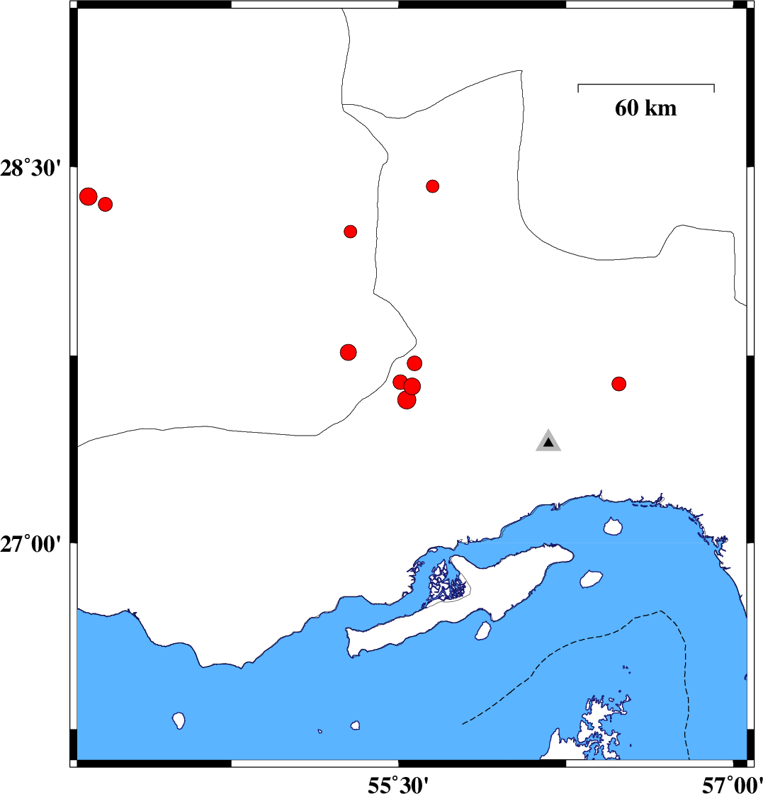 | 2017/06/09 | 10:22:37.7 | 14:52:37.7 | 27.627 | 55.56 | 17 | ML3.4 | Hormozgan Province, 83 km South-West of Hajiabad | ||